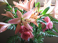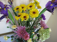 And finally, some beautiful flowers that were given to me by dear, lovely people I work with. Although, as you know, I can’t leave well enough alone. I had to take both bouquets apart and sort them into arrangements I found more pleasing than the florist’s.