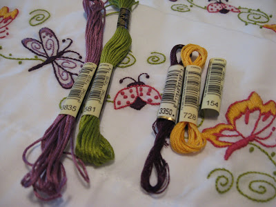 By now you know I didn’t use the recommended colors, mostly because I didn’t have them, and partly because I liked these better. I love, love that green. This time I used regular embroidery floss.Dark purple- DMC 3350